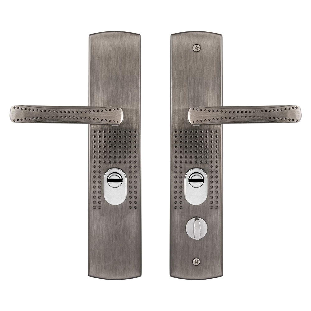 В комплект входит: ручки на планке, накладки на цилиндр, уплотняющая прокладка, комплект крепежа; квадрат для замков 8*120 мм; квадраты для замков с автоматическим запиранием 8*50 мм и 8*70 мм.