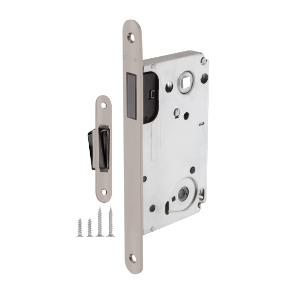 Бесшумная магнитная защелка Fuaro 5300-M-WC изготовлена в соответствии с требованиями ГОСТ 5089-2011. Предназначена для установки в деревянные межкомнатные и сантехнические двери, подходит для дверей левого и правого открывания. Корпус выполнен из стали с надежным гальваническим покрытием. Магнитный механизм обеспечивает бесшумность работы защелки. Защелка 5300-M-WC c усиленным блоком пружин имеет высший 4 класс надежности (250 000 циклов открывания/закрывания). Отверстия под стяжные винты находятся на расстоянии 38 мм. Размер межосевого расстояния - 90 мм. Возможна установка дверных ручек на стяжные винты для более прочного крепления. Цвет: матовый никель. В комплектацию входят: ответная планка с магнитной вставкой и крепежная фурнитура в цвет изделия. Защёлка Fuaro 5300-M-WC изготовлена в соответствии с требованиями ГОСТ 5089-2011.