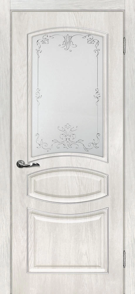 Качественная Межкомнатная дверь Сиена-5 Дуб жемчужный продается по цене 13 381 руб. за полотно. Доступные размеры 550x1900, 600x1900, 600x2000, 700x2000, 800x2000, 900x2000. Так же в наличии большой выбор комплектующих к данной модели, подходящих по цвету и фактуре.