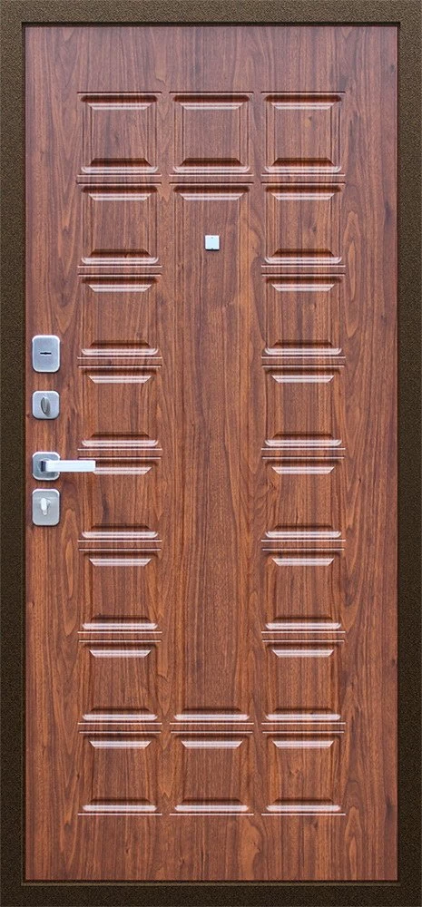 Надежная входная Дверь Спартак Орех темный премиум класса по цене 36 947 руб. Большая толщина стали защитит от проникновения в ваш дом, квартиру или коттедж. Используется очень качественная фурнитура: замки, цилиндры, ручки, защелки. Покрытие и отделка двери изготовлено под внимательным контролем производителя. Дверь имеет долгий срок службы и гарантию.