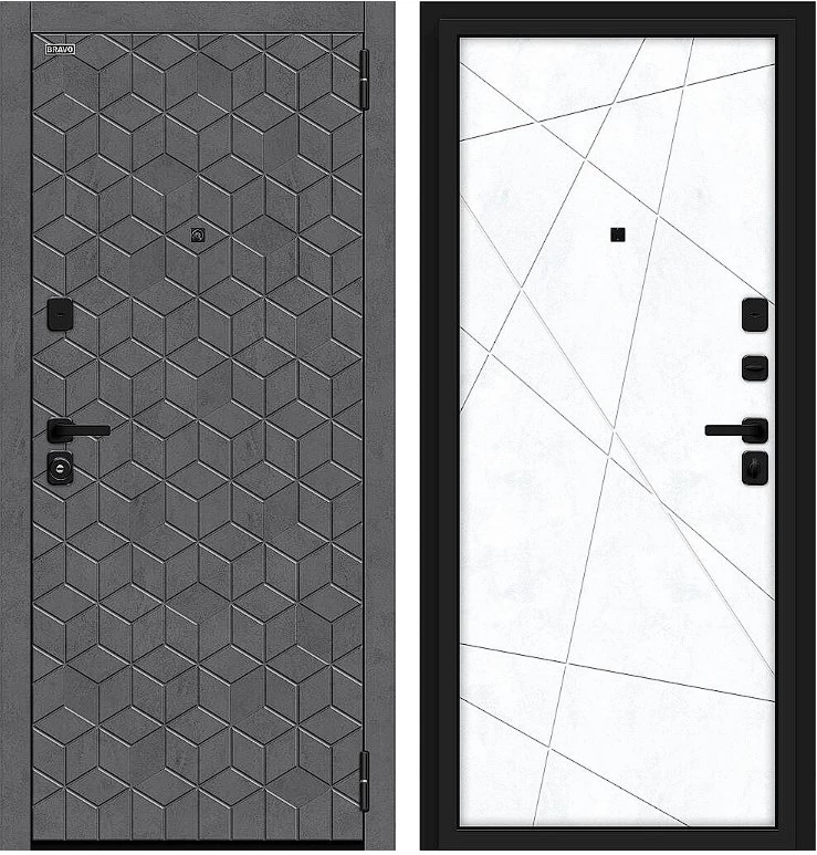 Надежная входная Дверь Браво Кьюб/SBlack Slate Art/Snow Art премиум класса по цене 42 097 руб. Большая толщина стали защитит от проникновения в ваш дом, квартиру или коттедж. Используется очень качественная фурнитура: замки, цилиндры, ручки, защелки. Покрытие и отделка двери изготовлено под внимательным контролем производителя. Дверь имеет долгий срок службы и гарантию.