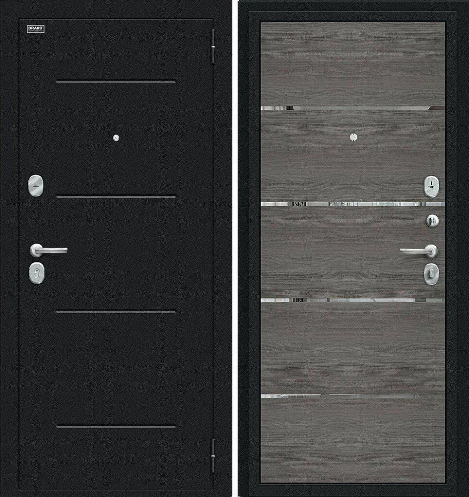 Надежная входная Дверь Браво Лайн Букле черное/Grey Melinga премиум класса по цене 32 817 руб. Большая толщина стали защитит от проникновения в ваш дом, квартиру или коттедж. Используется очень качественная фурнитура: замки, цилиндры, ручки, защелки. Покрытие и отделка двери изготовлено под внимательным контролем производителя. Дверь имеет долгий срок службы и гарантию.