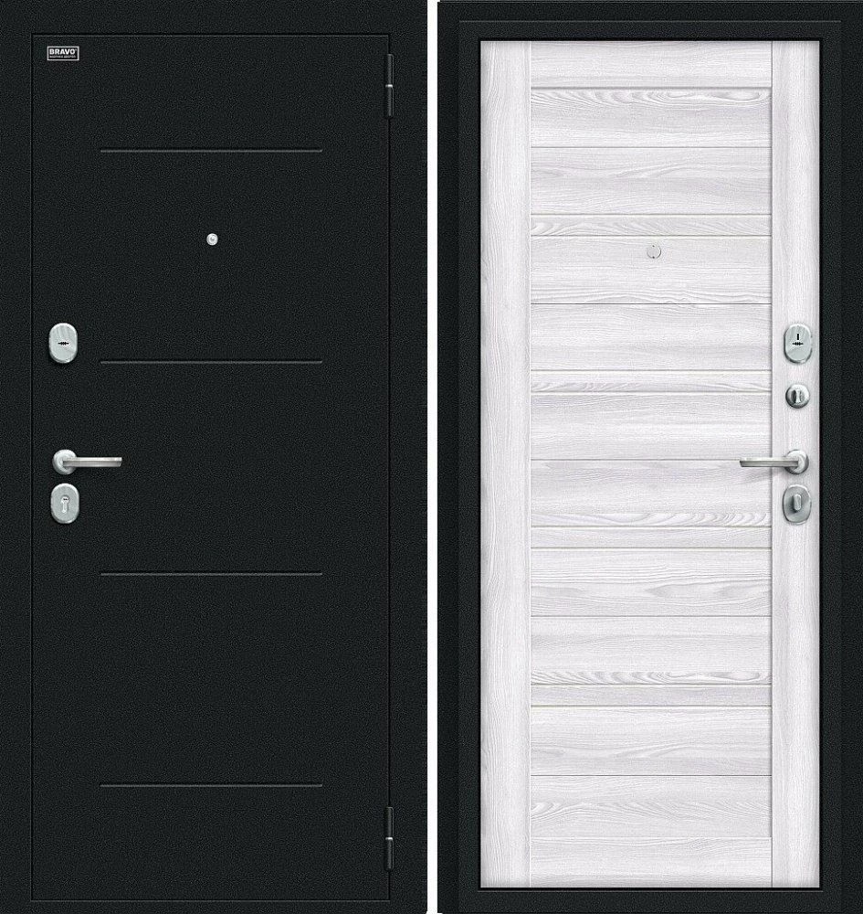 Надежная входная Дверь Браво Сити Kale Букле черное/Riviera Ice премиум класса по цене 38 247 руб. Большая толщина стали защитит от проникновения в ваш дом, квартиру или коттедж. Используется очень качественная фурнитура: замки, цилиндры, ручки, защелки. Покрытие и отделка двери изготовлено под внимательным контролем производителя. Дверь имеет долгий срок службы и гарантию.