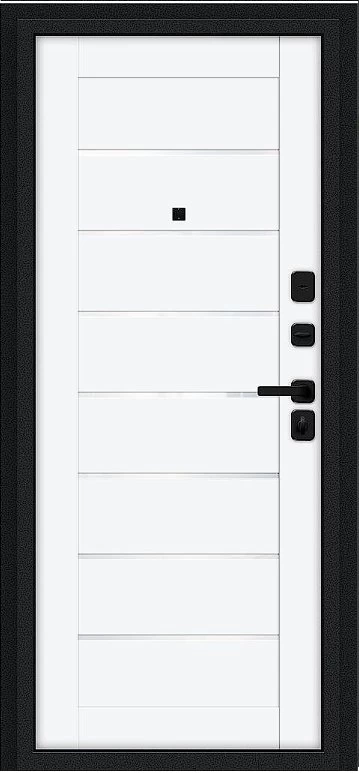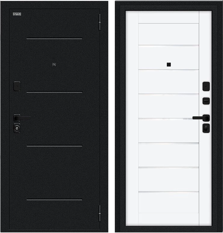 Надежная входная Дверь Браво Техно/SBlack Букле черное/White Silk премиум класса по цене 36 197 руб. Большая толщина стали защитит от проникновения в ваш дом, квартиру или коттедж. Используется очень качественная фурнитура: замки, цилиндры, ручки, защелки. Покрытие и отделка двери изготовлено под внимательным контролем производителя. Дверь имеет долгий срок службы и гарантию.