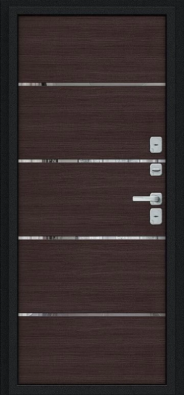 Надежная входная Дверь Браво Thermo Лайн/BChrome Букле черное/Wenge Melinga премиум класса по цене 48 997 руб. Большая толщина стали защитит от проникновения в ваш дом, квартиру или коттедж. Используется очень качественная фурнитура: замки, цилиндры, ручки, защелки. Покрытие и отделка двери изготовлено под внимательным контролем производителя. Дверь имеет долгий срок службы и гарантию.