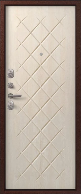 Надежная входная Дверь V-02 медь антик - седой дуб премиум класса по цене 39 597 руб. Большая толщина стали защитит от проникновения в ваш дом, квартиру или коттедж. Используется очень качественная фурнитура: замки, цилиндры, ручки, защелки. Покрытие и отделка двери изготовлено под внимательным контролем производителя. Дверь имеет долгий срок службы и гарантию.