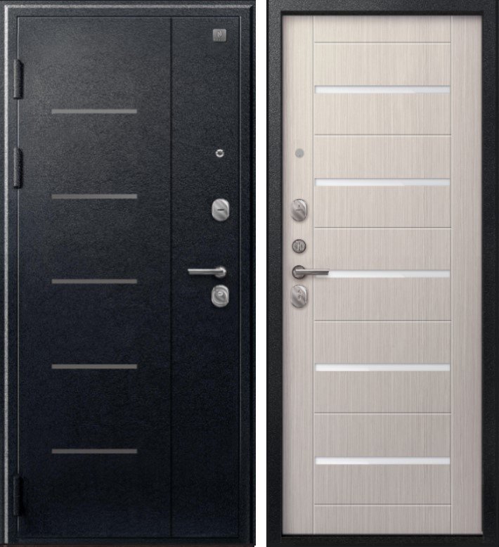 Надежная входная Дверь V-05 Черный муар - Лиственница светлая премиум класса по цене 44 747 руб. Большая толщина стали защитит от проникновения в ваш дом, квартиру или коттедж. Используется очень качественная фурнитура: замки, цилиндры, ручки, защелки. Покрытие и отделка двери изготовлено под внимательным контролем производителя. Дверь имеет долгий срок службы и гарантию.